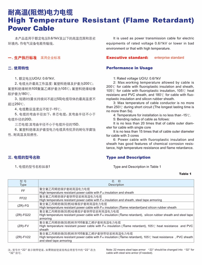 耐高溫(阻燃)電力電纜